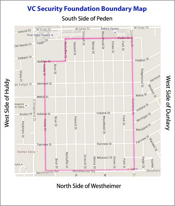 Every city grapples with the issue of crime, and Houston is no exception. While no neighborhood is immune from crime, all can benefit from increased security. The VC Security Foundation (“the Foundation”) was created in November 2015 as a 501(c)(3), non-profit corporation with the vision of improving safety and security in our neighborhoods. The Foundation brings together the Lewisdale, Park Civic and Vermont Commons neighborhoods and functions as administrator for our neighborhood Constable Patrol.